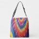 Canvas tote bag featuring a retro tie-dye pattern. Available in sizes medium and large.