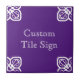 Custom tile sign. Spanish tile style. Purple background. Custom colours can be requested.