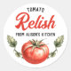 Vintage Style editable Homemade Tomato Relish canning Stickers featuring a watercolour tomato illustration. Make your own canning labels for your favourite homemade tomato recipes. To use on your canning lid or on the side of the canning jar. Perfect for preserves, homemade gifts or as kitchen pantry organiser.