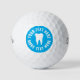 Custom tooth logo golf ball set gift for dentist or dental hygienist. Personalised golf ball set marked with coloured graphic.