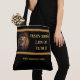 Custom Faith Tote Bag - "Jesus Christ Lion Of Judah" text on black background with gold lettering and awesome lions head. Customise this bag with your name or preferred text and make it unique to yourself..