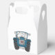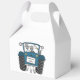 A tractor country farm wedding favor box which can be personalized. The bunting in the tractor is in a subtle cream and white. The perfect wedding favors for a couple who are having countryside farm wedding.