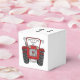 A tractor country farm wedding favor box which can be personalized. The bunting in the tractor is in a subtle cream and white.