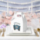 A tractor country farm wedding favor box which can be personalized. The bunting in the tractor is in a subtle cream and white.