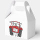 A tractor country farm wedding favor box which can be personalized. The bunting in the tractor is in a subtle cream and white.