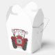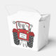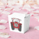 A tractor country farm wedding favor box which can be personalized. The bunting in the tractor is in a subtle cream and white.