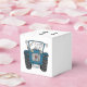 A tractor country farm wedding favor box which can be personalized. The bunting in the tractor is in a subtle cream and white.