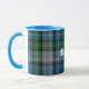 Great looking Scottish clan mug done in the traditional blue, green, grey, and black MacNeil plaid pattern. Old world style text in white reads MacNeil and is customisable to read what you want.