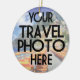 You will love this custom 2 photo 2 sided travel photo Christmas ornament with two photos if you've travelled this year and want to remember a special place this year. With this unique personalised Christmas keepsake ornament you can add your own photos as well as your travel location and the year of your travel in trendy hand lettered script typography. Easy to customise with your travel location, date of travel, and two of your own photos.