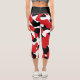 Custom Trendy Red Black Cow Print Capri Leggings