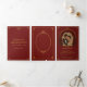 Elegant Ruby Red & Gold Wedding Trifold Invitation. Fully customizable text for a 5" x 7" celebration announcement. Features classic borders on Signature Matte paper. Perfect for couples seeking timeless design. Includes white envelopes.