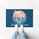 Stylish contemporary and classy image of teal blue, dark and light coloured orange coloured seashore sunset on a tropical and exotic Hawaiian island beach with white palm trees. With the option to customise or personalise with a welcome text or family name of your choice. A cute, modern and pretty decorative design for the lover of Hawaii or the Caribbean, beaches, the ocean, sea, the beauty of the tropics, and popular summer vacation destinations.
