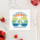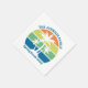These cool personalised tropical beach sunset party napkins feature 3 palm trees silhouetted against an orange and blue sky accented with yellow and green at the coast. Customise with your family trip name for your coastal getaway this spring break or summer or ocean cruise vacation.