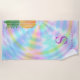 This unique faux holographic tropical beach towel with monogram and line-art pineapple is easy to personalise with your initials and name to create a unique gift for those who love summer, pool parties and all magical things such as unicorns and mermaids.