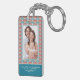 Custom Two Portrait Photo with Decorative Pattern Key Ring