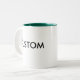 Custom Two-Tone 11oz Ceramic Mug - HUNTER GREEN Inside, 4.8” high x 3.2” diameter. 11 oz or 15 oz options. Microwave and dishwasher safe. FDA food and beverage safety approved. Black, lime, maroon, navy blue, orange, pink, red, yellow, hunter green, and light blue colour options.