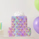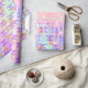 Elegant, girly, glamourous style party gift wrapping paper for a 10th (or any age) birthday. A trendy holographic coloured background with unicorn and rainbow colours in pink, purple, mint green. Decorated with drips in pink, purple and a golden unicorn pattern. Personalise and add a name and age 10. Purple coloured letters.