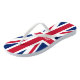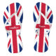 Customise the name on these patriotic English Union Jack flag flip flops. Classic British red, white and blue. The flag of the United Kingdom. Customise both the left and right foot.