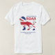 Custom UNION JACK Lion T-Shirt, designed with the British red, white and blue flag of the United Kingdom in the shape of a lion. The text in the top right hand corner reads THE CALM BEFORE THE ROAR in bold blue and red typography. Underneath there is CUSTOMIZABLE TEXT which currently reads THE RIGHTEOUS ARE AS BOLD AS A LION which is a Christian Bible verse based on Proverbs 28:1. This text can be personalised by adding your name, team name or other text, or you can delete. This Union Jack T-shirt would make an ideal gift for the patriotic Briton, especially when celebrating national holidays such as VE Day, Platinum Jubilee, St George's Day, etc
