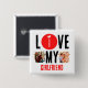 Custom Unique 2 photo Collage I Love My Girlfriend 15 Cm Square Badge