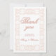 Custom elegant sophisticated white lace on pink frame thank you card. Designed in sophisticated style with ornamental lace with pink letters with a darker pink shadow. You can change the text.