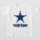 Highlight your favourite team name with this kids custom sports themed t-shirt designed with a sheriff style star decal allowing you the ability to customise your favourite team or personal name. This shirt can be personalised with any fan or sports team name. This cool sports themed team name t-shirt makes a great gift for fans, players, and team supporters alike