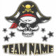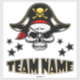 Highlight your favourite team name with this custom sports themed sticker designed with a pirate skull decal allowing you the ability to customise your favourite team or personal name. This team name sticker can be personalised with any fan or sports team name. This cool sports themed sticker makes a great gift for fans, players, and team supporters alike.