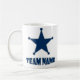 Warm up your day with this custom sports themed coffee mug designed with a sheriff style star decal allowing you the ability to customise your favourite team or personal name. This mug can be personalised with any fan or sports team name. This cool sports themed coffee mug makes a great gift for fans, players, and team supporters alike.