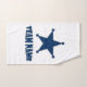 Highlight your favourite team name with this custom sports themed hand towel designed with a sheriff style star decal allowing you the ability to customise your favourite team or personal name. This team towel can be personalised with any fan or sports team name. This cool sports themed team name hand towel makes a great gift for fans, players, and team supporters alike