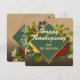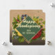 Unique cute and decorative Thanksgiving Holiday season greeting card. With pretty colourful antique floral arrangement pattern, surrounded by a faux gold border design, on a simple rustic classic brown kraft paper looking background. With room to easily customise or personalise with your family name on the front and text of your choice on the backside of the card.
