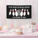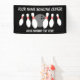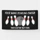 Custom vinyl banner with bowling ball and pins. Make your own personalised banner with custom name, business name, team name etc. Great for bowling alley, party, sports event, club, tournament and more. Colours can be changed.