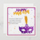 Custom Violet and Orange Sparkles Mask Mardi Gras Holiday Card