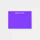 A pad of violet/indigo post-it notes with a whitish purple text template.