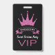 Custom VIP Pink Glitter Girly Sweet Sixteen ID Badge