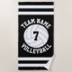 Make your own customised volleyball beach towels! Personalise them with your own volleyball team name and player jersey numbers. The background colour, currently set on black, can also be customised as well to match your team colours!
