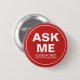 The perfect button for volunteers - text reads "Ask Me" with space for two lines of custom text. Add your event name, volunteer name, date, etc. (or delete). Great for businesses, schools, special events, libraries, charity events, races, etc. Background colour is currently red but this can easily be changed - click personalise/customise and scroll down to colour picker.