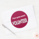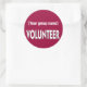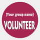 Volunteers for your event or organisation can wear these for identification purposes. The word volunteer is large in white stylised letters with a black shadow to make it stand out. Just change to your custom text or group name. Change the background colour if you like (edit/background).