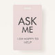 The reverse side reads “Ask me, I am happy to help”, creating a clear, welcoming message from any angle. All wording is fully editable, allowing you to tailor the text for volunteers, staff, helpers, guides, stewards, or support teams.