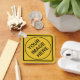 Diamond shaped yellow warning sign. Custom image. Custom text at the back side.
