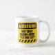 Make your own unique and personal custom warning coffee mug to treat yourself, or to give as a birthday or christmas present to your loved ones. This template displays a yellow square caution sign with rounded corners, black diagonal stripes and exclamation mark. Finish the sentence "may start talking about" with your chosen subject, (the maximum length is 13 characters). Show off your personality with this funny mug and express how much you love a specific topic, such as: hobbies, sports, tv programmes, books, academic subjects, pets, vehicles, fictional characters, etc.