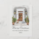 This elegant watercolor Christmas card features a cute dog seated in front of an elegant door, surrounded by festive topiary and foliage and a gorgeous little Red Cardinal bird. The front reads Merry Christmas. You can customise the greeting, add your family name and the year (or leave blank if you prefer). The back has been left blank for any personal message you wish to write.