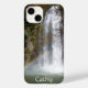 An iPhone 14 Case with a photo of a waterfall with a beautiful arcing rainbow at the bottom. Personalise this by changing the name!