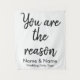 custom wedding backdrop for reception, wedding reception calligraphy back drop, wedding photo booth tapestry backdrop, wedding reception banner, you are the reason, custom wedding backdrop for ceremony, wedding photobooth rustic wedding decor, engagement party bridal shower banner, wedding head table couple backdrop, personalized names wedding back drop, wedding backdrop prop photo booth, personalized wedding banners photo prop, wedding welcome sign elegant minimalist, simple modern script calligraphy décor, mr and mrs classic photobooth, bride and groom boho typography, engaged couple stylish reception party, custom black and white quote engagement selfie, tapestries newlyweds picture back drop, you are the reason backdrop