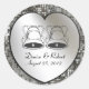 Now great especially for engagements, weddings, and anniversary parties with the added lovely graphic of two wedding bells. Popular Shiny Disco Fever Party Pattern Stickers! Cool, cute, fun shining glitter sticker seals design are the perfect stickers now in this popular round shape. A cool, trendy style in silver sequins metallic look background pattern close up of a retro, vintage, sparkling, shiny disco dancing style mirror ball dance globe. Make nice fun gift tags for Valentine's Day, birthdays, holidays, anniversary parties, etc. too! Added is a shiny silver heart on top giving a 3d look to these fun stickers. Easily add the bride and groom names and the date of the wedding to customise.