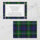 Lovely tartan plaid wedding enclosure card made using the traditional blue and green Forbes plaid. A white text area is surrounded by a pewter like frame. Personalise all the information for your reception and anything else you want on the card.