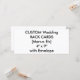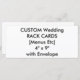 Custom Wedding Menu & Program Rack Card with envelope, printed on bright white cover weight (100 lb.) card stock with a gloss finish, high quality, full-colour, full-bleed printing. 4" x 9" (portrait) or 9" x 4" (landscape) options. Minimum 25 card order. Up to 50% off for bulk orders.