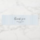 Our custom blue and white stripe wedding name thank you water bottle labels make the perfect addition to your party or wedding favours.