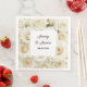 This custom wedding paper napkin is shown in a lovely white roses floral print.