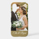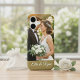 Capture the magic of your special day with this elegant custom photo iPhone case. Featuring a clean, modern design with a gold-toned accent bar, this case allows you to showcase your favourite wedding portrait or engagement photo.