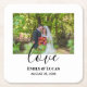 Custom Wedding Photo Simple Elegant Calligraphy Square Paper Coaster